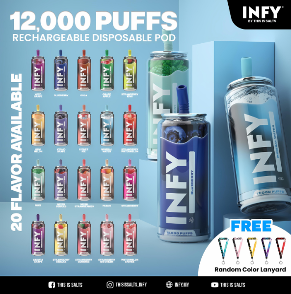 | ใช้แล้วทิ้ง INFY 12K | น้ำแร่, บลูเบอรี่, พีช, มิกซ์สตอเบอรี่, มิกซ์เบอรี่, มิ้นท์, ลิ้นจี่ไอซ์, สตอเบอรี่, สตอเบอรี่กล้วย, สตอเบอรี่กัมมี่, สตอเบอรี่กีวี่, สตอเบอรี่แตงโม, สตอเบอรี่ไอศครีม, องุ่นซากุระ, องุ่นเคียวโฮ, องุ่นแอปเปิ้ล, องุ่นโยโย่, เมล่อน, แตงโมลิ้นจี่, โคล่า |